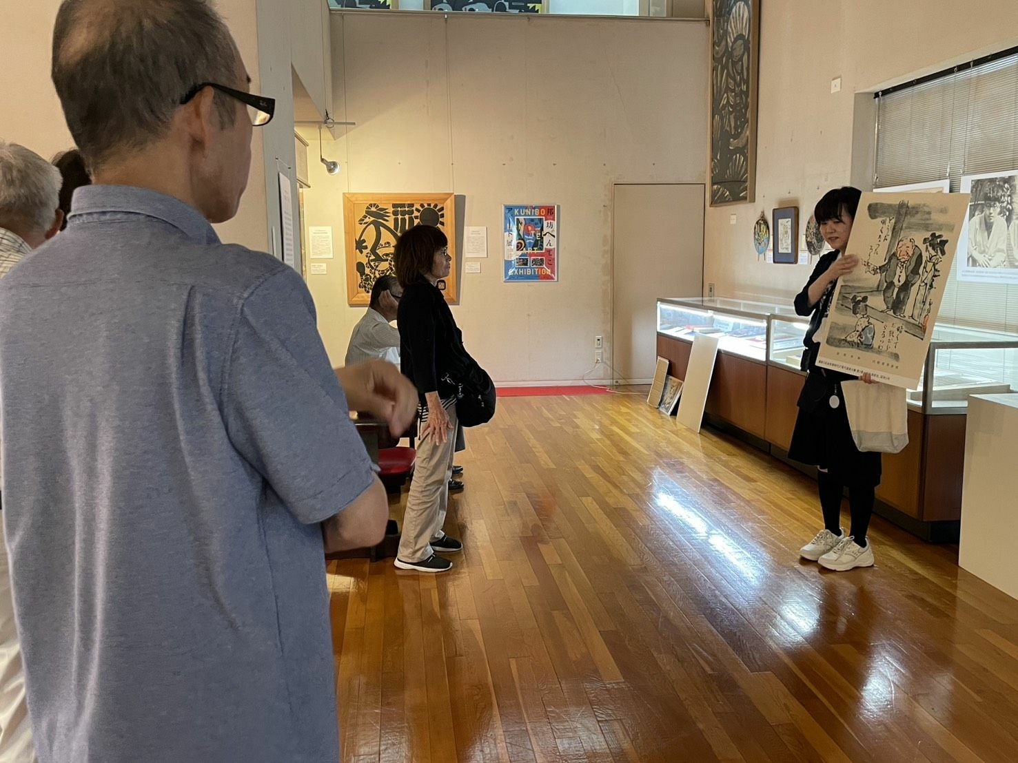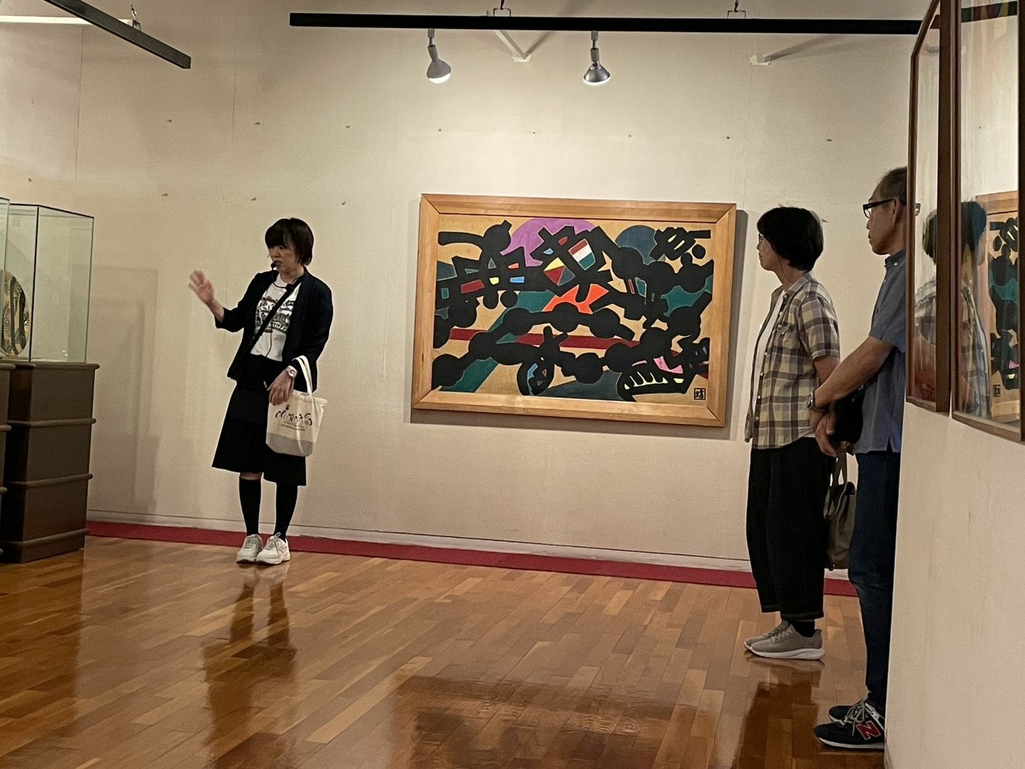 今日(2025/10/11)は「邦坊へんてこアート展」のミュージアムトーク(第1回目)を開催しました。チラシの発送に追われていてイベントの告知ができていませんでした、常連のお客様&リピータのお客さんの5名に参加いただきました。初回は皆さんの反応を見ながら探り探り話してしまうところがありますがアットホームにお話でき楽しかったです。展示がオープンして今日で1週間ですが、さっそくリピーター割引を利用して2回目の来館という方もいました。その期待に応えるため気合を入れてお話したので少しヘロヘロです。