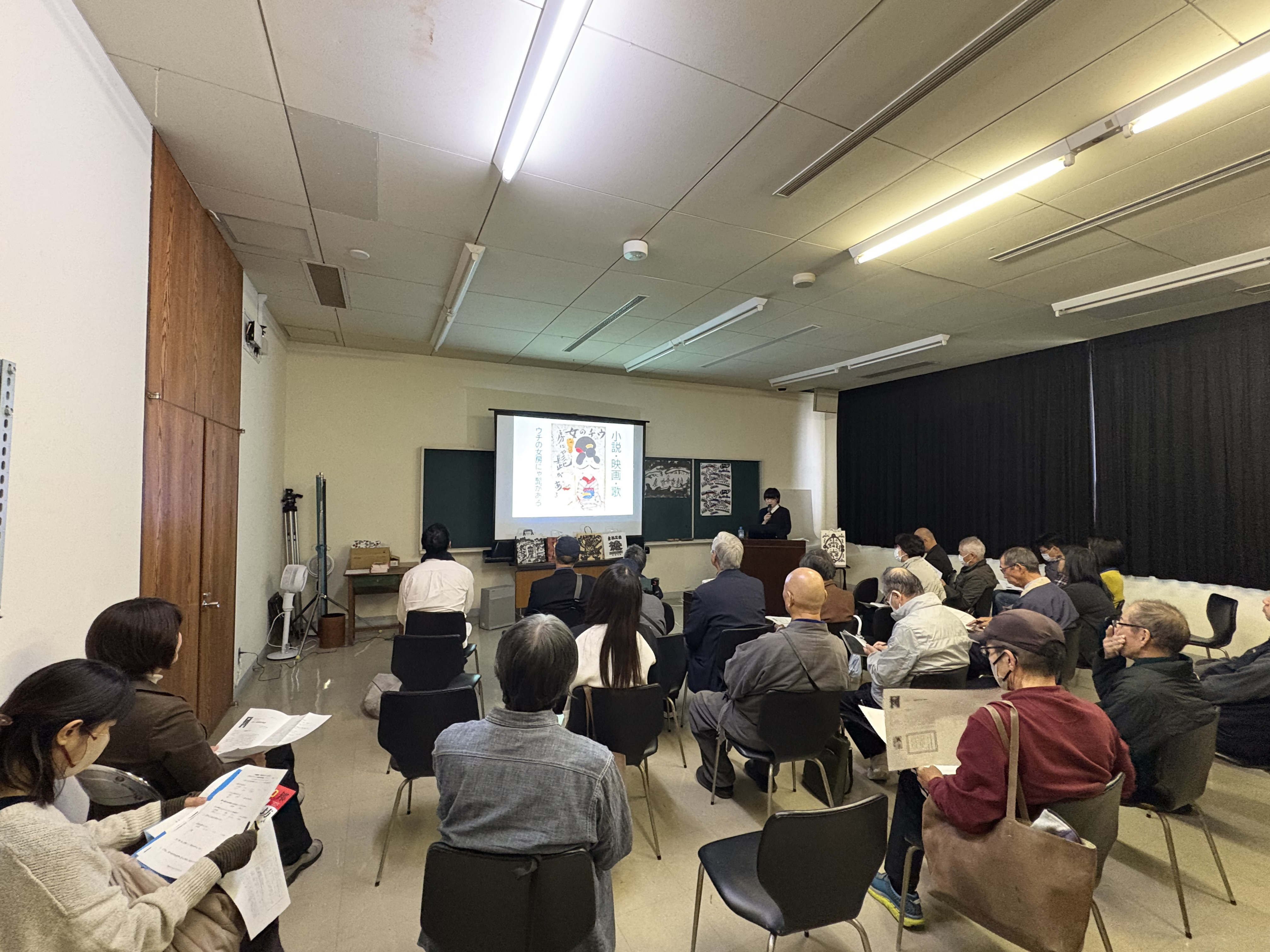 先日(2025年11月1日)に五色台にある瀬戸内海歴史民俗資料館(れきみん)の連続講座に当館学芸員が登壇しました。れきみんで開催している「第18回企画展新民芸の創出 -デザインで生活を豊かにする-」の関連イベントとして和田邦坊のデザインについて紹介しました。