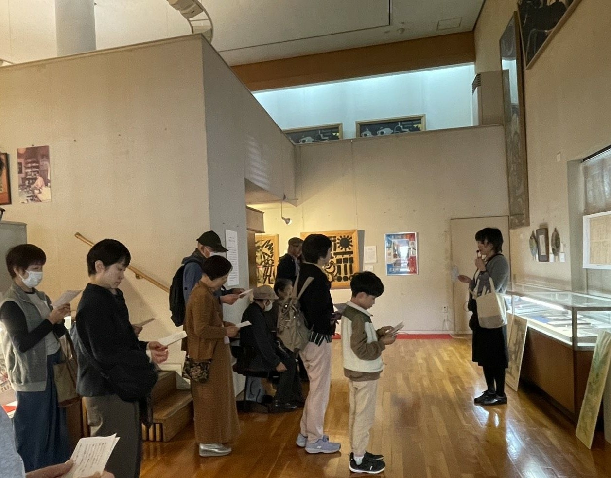 今日(2025/11/15)は「邦坊へんてこアート展」のミュージアムトーク(第2回目)を開催しました。先週&先々週から五色台や屋島のイベントに登壇し企画展のPRをしてきたので反響を期待していたところ、なんと31名の方にご参加いただきました!ありがとうございます!館外活動の賜物とともに常連のお客さんの参戦も多く、今回も大きな励みとなりました。「前回のギャラリートークの様子をFBでみたら参加者が少なかったでしょ…だから今回は行かなきゃと思って!」という声援もありました(笑)前回は、確かに告知ができていなくて少なかったですよね。今回は挽回したつもりです、広報がんばりました!また、以前取材でお世話になったメディア関係者の方にも来館いただきました(ひと際すてきオーラを放っていました…お洒落で美人なMさん!プライベートのご参加でした!)。公民館大会で親しくなったOさんは、可愛らしいお孫さんと来館してくださいました。小学生の参加があると妙に緊張しましたが嬉しかったです。それから、絵手紙の皆さんにも久しぶりお会いできました。今回も楽しい出会いだけでなく新しい御縁もあり、個別のアフタートークも盛り上がりました。