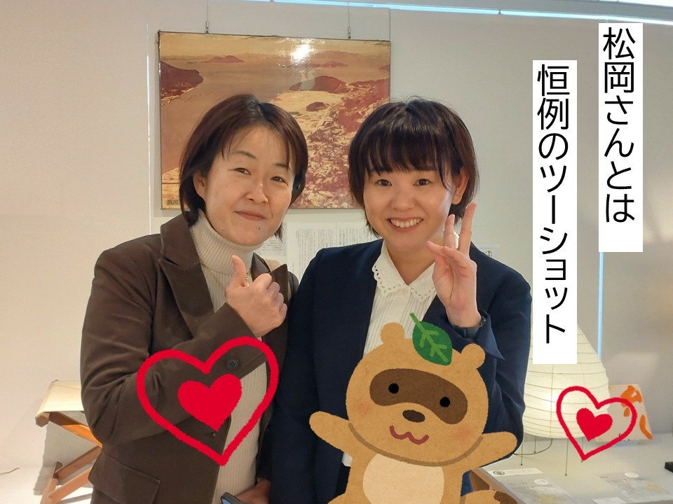 翌日、美術館で参加してくれていた常連さんから「司会の人の話が一番よかった」と感想をいただきました(笑)そうそう司会を担当していた松岡館長は、私が学生時代からお慕いしている方でトークイベントでも多大なサポート&フォローいただきました。当日は、恒例のツーショット写真もゲットいたしました。前職でもお世話になりましたが、現職でもこのようにお仕事ができて讃岐富士より高きありがたやまです!