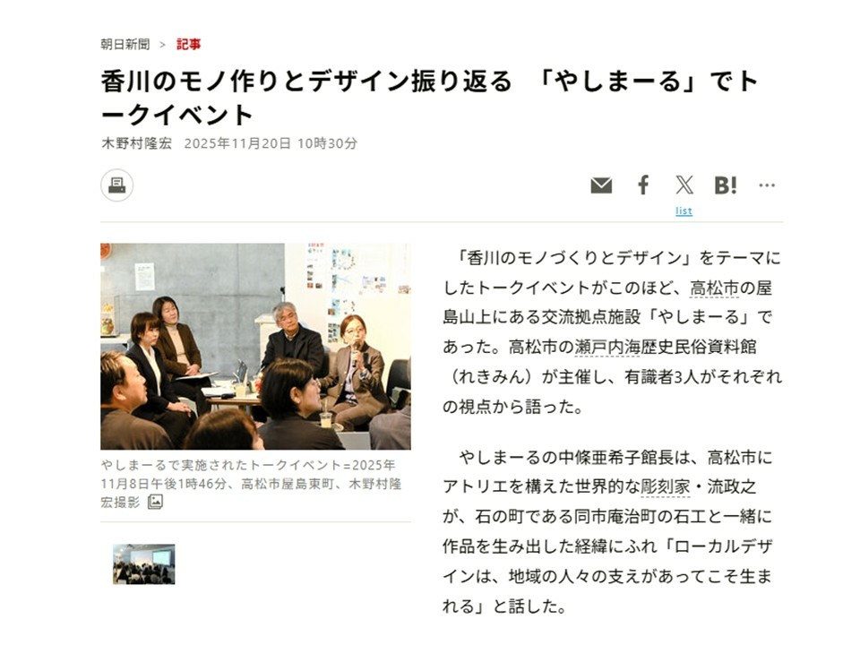 2025/11/08「香川のモノづくりとデザイン」トークイベント@やしまーる に登壇しました