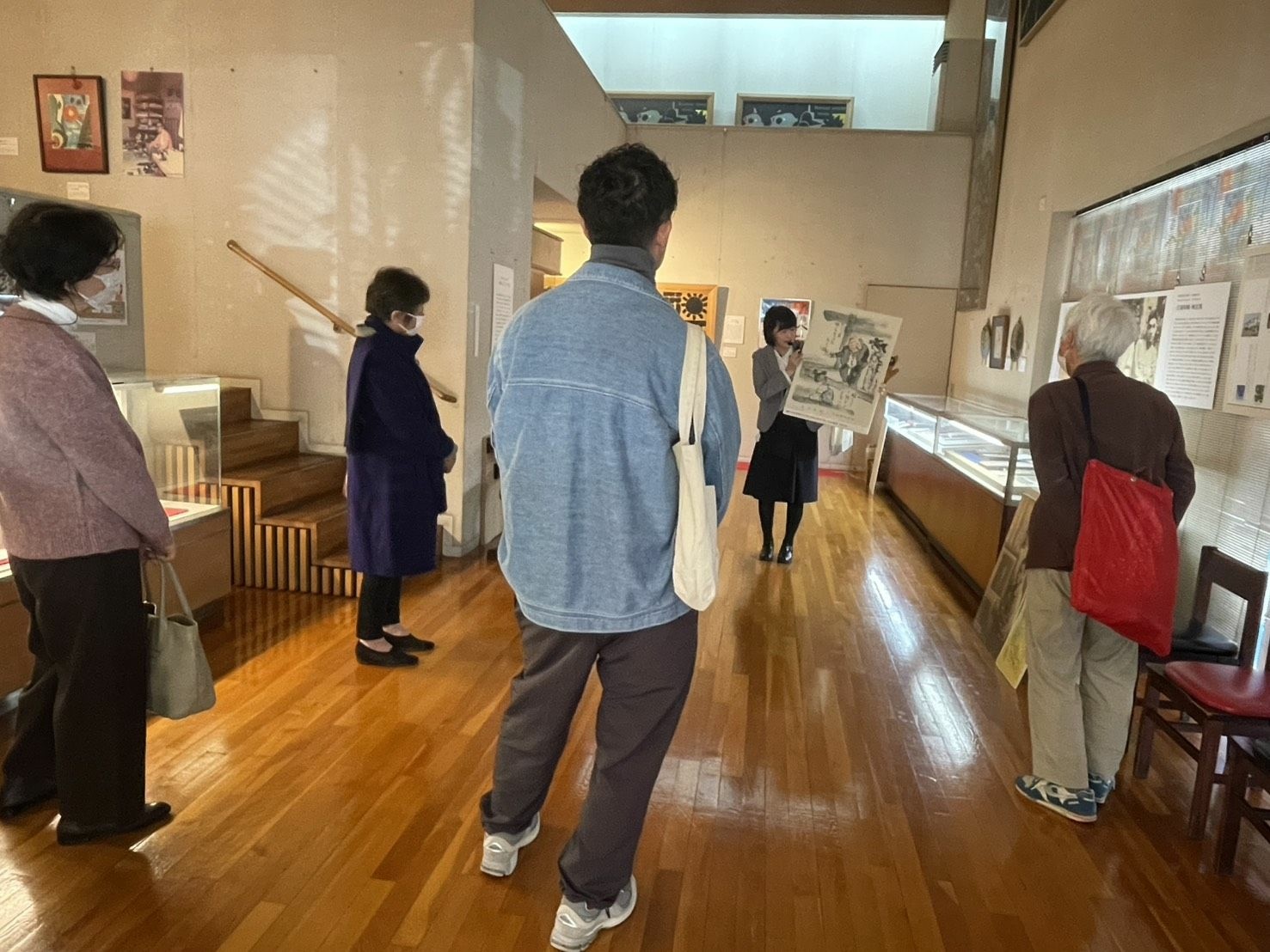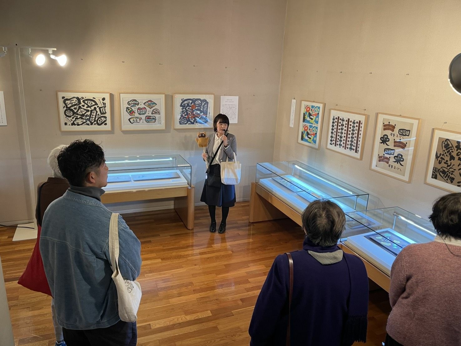 先日(2025年12月20日)「邦坊へんてこアート展」のミュージアムトークを開催しました。前回は大勢の参加で圧倒されてしまいましたが、今回はアットホーム!7名の皆様と一緒に展示室を散策しました。リピーター割引を使って2回目の来館をしてくださった方。また、自作の研究ノートを持参して作品をじっくり鑑賞している方など、熱心な参加者に囲まれていたので、私の解説も熱が入りました。終了後に「思い起こせば、高校生のときに和田邦坊さんの個展を見ているかも・・・とさっき思い出しました」というお客さまもいました。なんと、なんと~。なにかのはずみで琴線に触れた言葉や風景があったのかもしれません。ミュージアムトークが思い出の扉を開く鍵になったことは嬉しかったです。