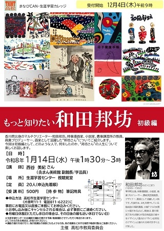 先日(2026年1月14日)高松市にある生涯学習センター「まなびCAN」の講座に当館学芸員が登壇しました。高松市内の講座は久しぶりだったのですが満員御礼のご参加をいただきました。皆様、ありがとうございます。参加者の顔をしっかり見ることができた距離感だったので「うん、うん」と頷きながら聞いてくれる方もいれば、一心不乱にメモを取る方もいらっしゃって嬉しかったです。本当に皆さんかぶりついて聞いてくれるのでいつも以上に話に力が入りました。講座のあとはすぐにラジオの出演があったので、質問タイムはとれませんでしたが途中で回収したアンケートをみると「今回は初級編。中級編もありますか?」という次のご要望(期待と応援)もいただきました。中級編はテーマを絞って開催してみたいですね。機会があれば頑張りたいです!