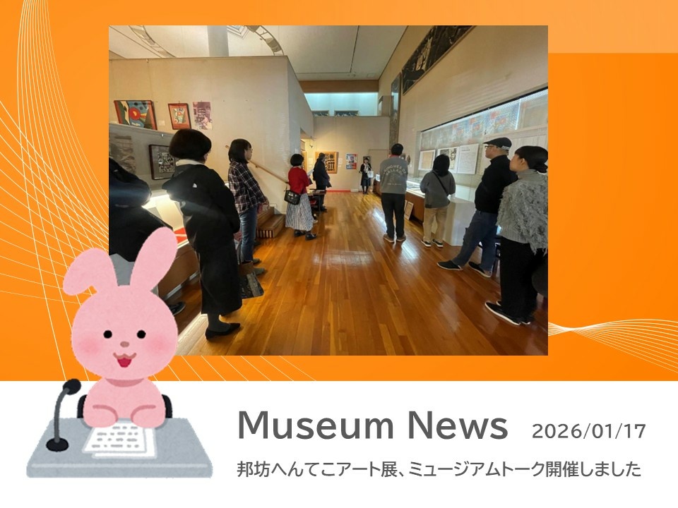 先日(2026年1月17日)「邦坊へんてこアート展」のミュージアムトークを開催しました。年明け早々に四国新聞、読売新聞、RNCラジオなどメディアにでていたので話題が集まったようで満員御礼!30名の参加がありました。ありがとうございました。新年の挨拶ができていませんでしたが、いつも応援してくださる常連のお客さんも多くて嬉しかったです。今年もがんばります~!えいえいお~!