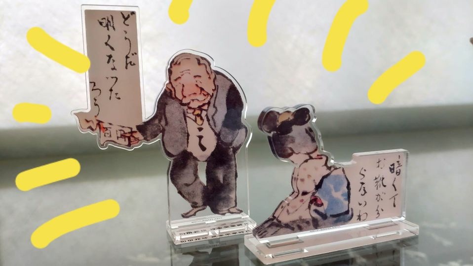新商品のアクリルスタンドやバッチのサンプルも同じところに飾っているのでご来館の際は見つけてください。