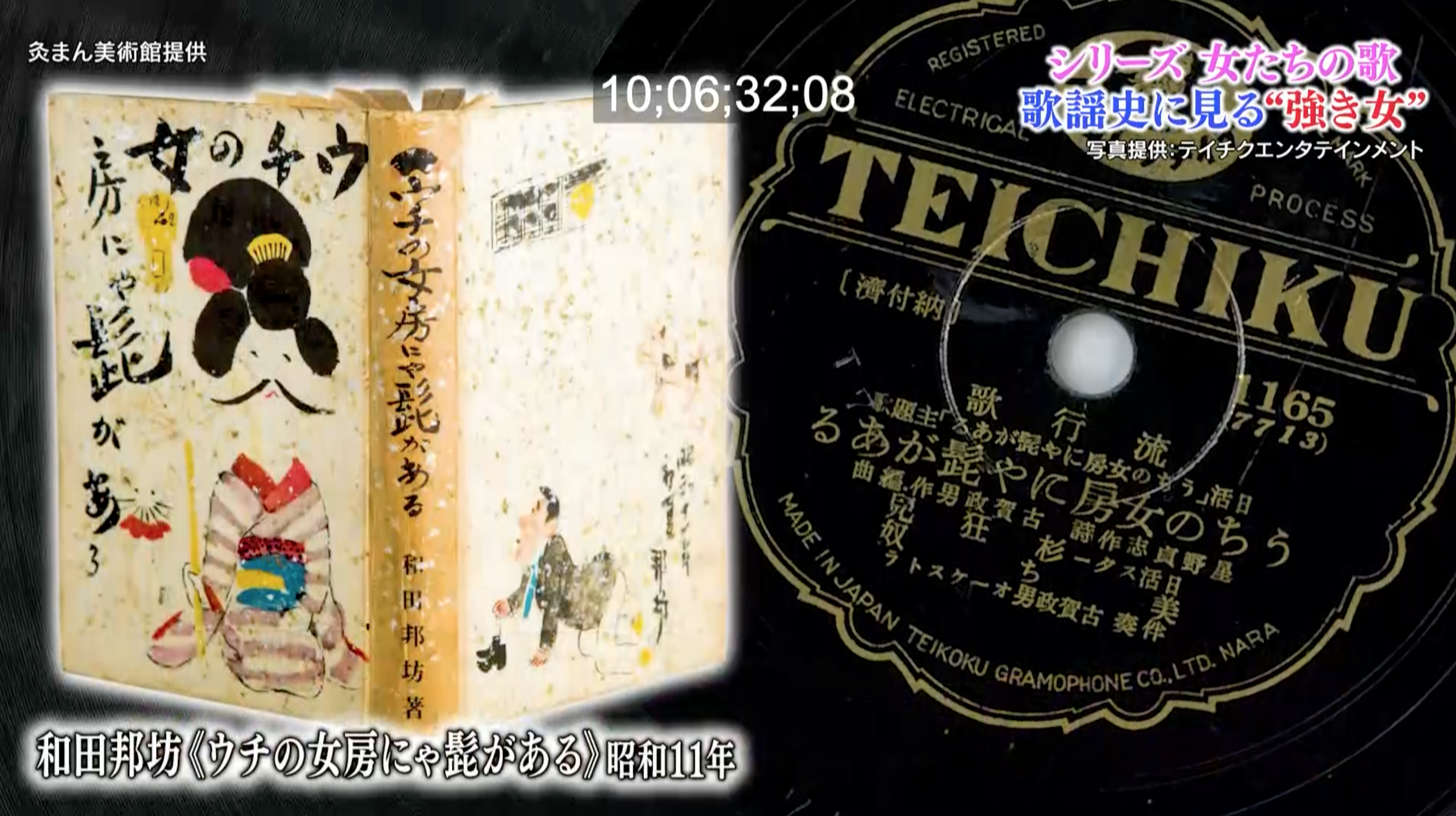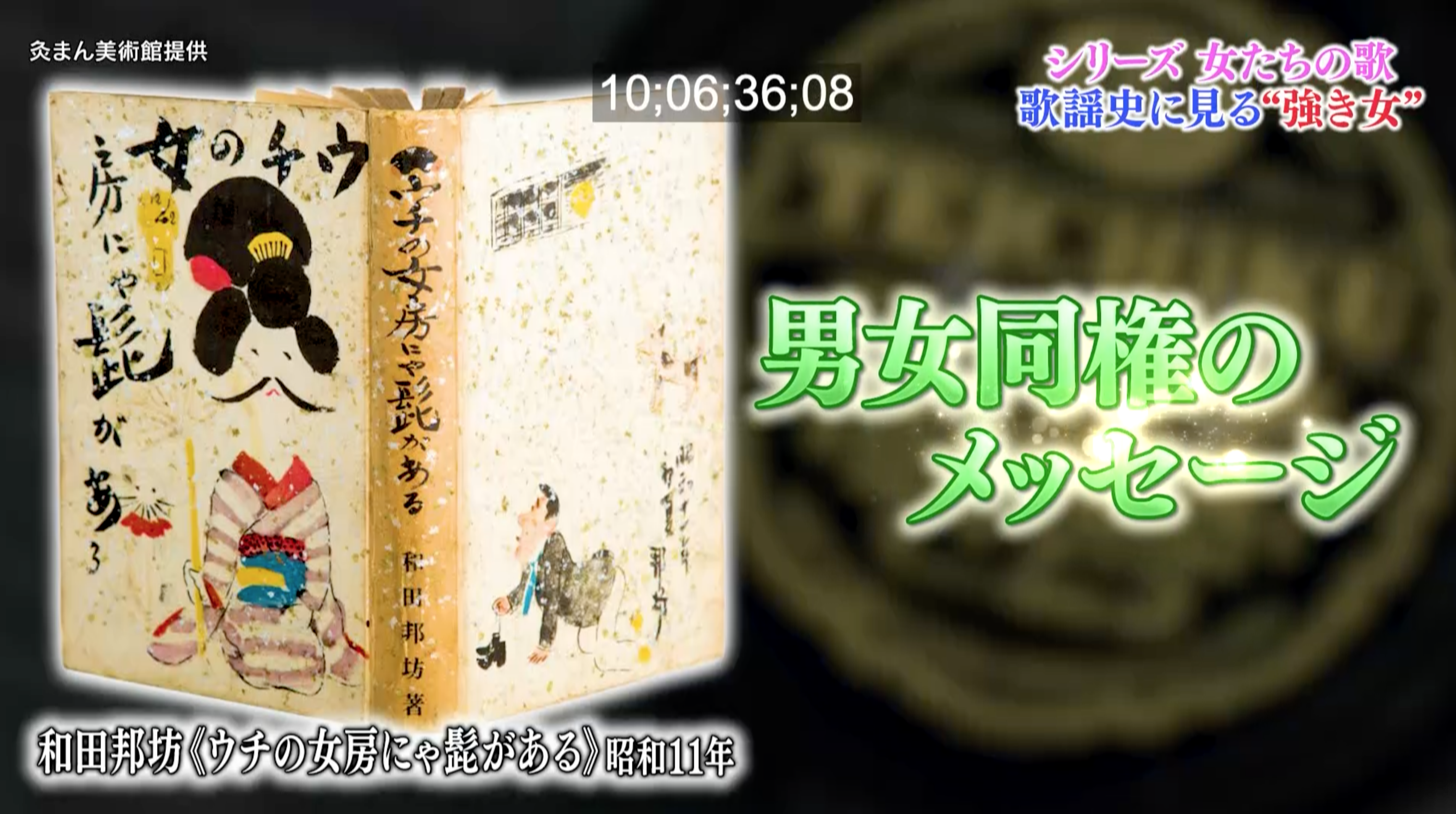 先日(2025年11月28日)BS東京のTV番組に画像提供の協力をしました。昭和を代表する人やモノ、流行などにスポットを当てながら、ゆかりの人や関係者をゲストに迎えたトーク番組のなかで映画の主題歌「ウチの女房にゃ髭がある」(原作:和田邦坊)が登場しました。美術館は単行本の装丁写真、また原作解説の協力をいたしました。タイトルのインパクトが強すぎる作品ですが、よくよく原作を読んでみると男女平等を謳う話が物語の主題になっています。残念ながら映画のなかでは、その部分は改変されてしまっています。(いえ、その部分どころではなく全体的に物語は大いに改変されています…)ともあれ、放送をみて和田邦坊画伯の他の作品にも興味を持ってもらえると嬉しいです!