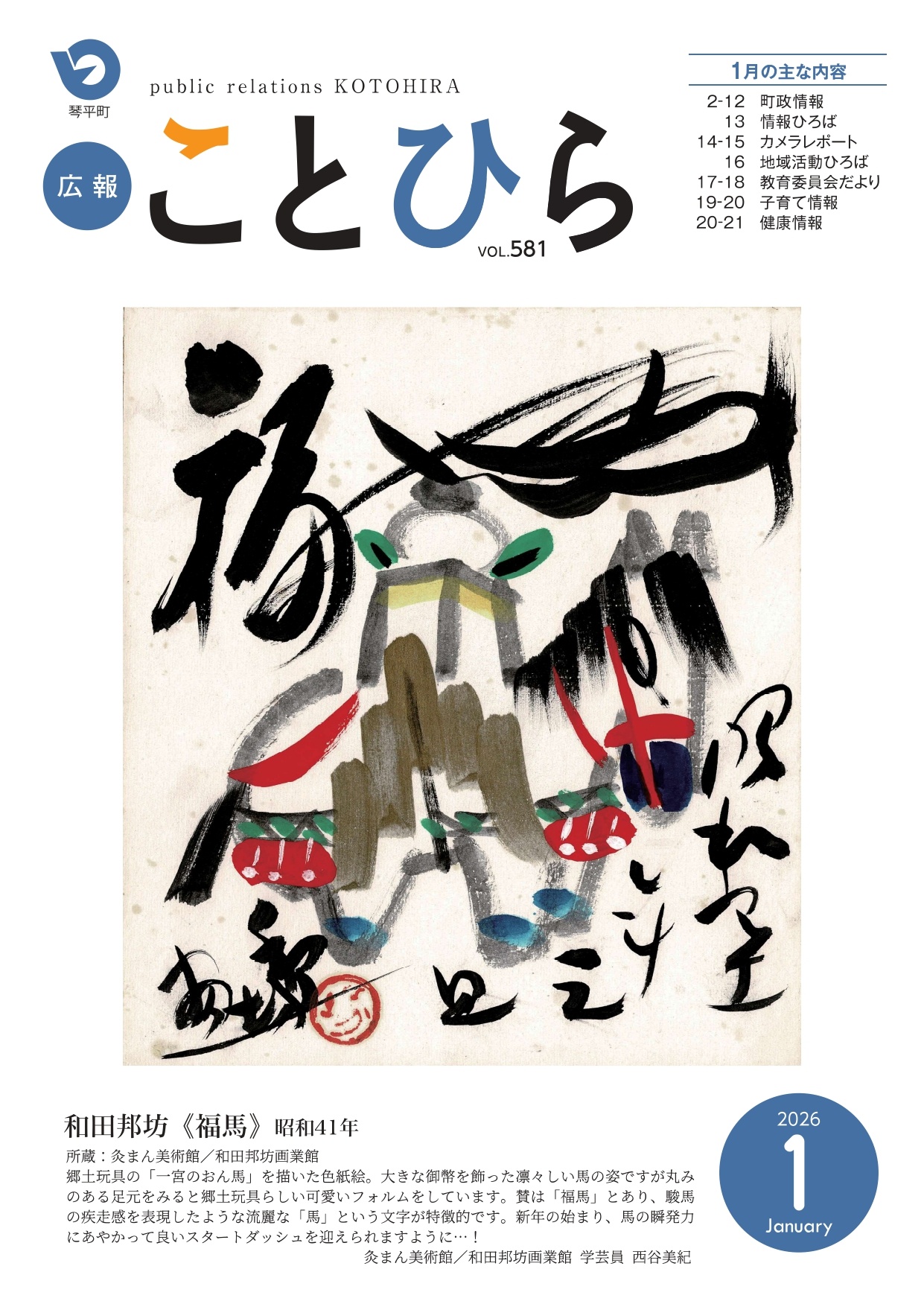 令和7年(2026)広報ことひら表紙 和田邦坊《福馬》