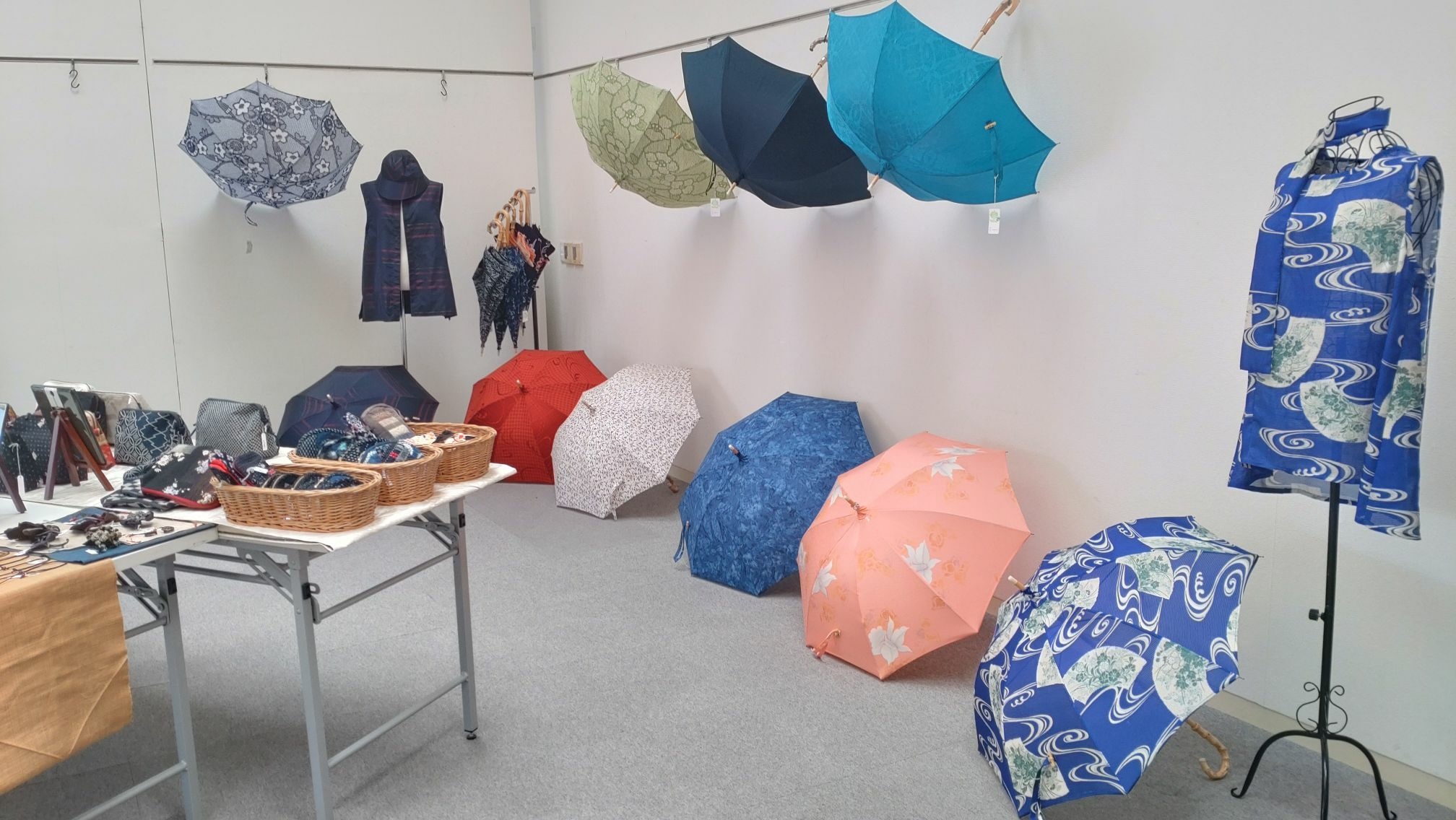 森のくまさん2ndを主催する西谷育代(三豊市)による個展。「楽しくSDGs」をテーマに日傘、チュニック、スカート、和小物(ポーチ、ブローチ)など、約200点を展示する。